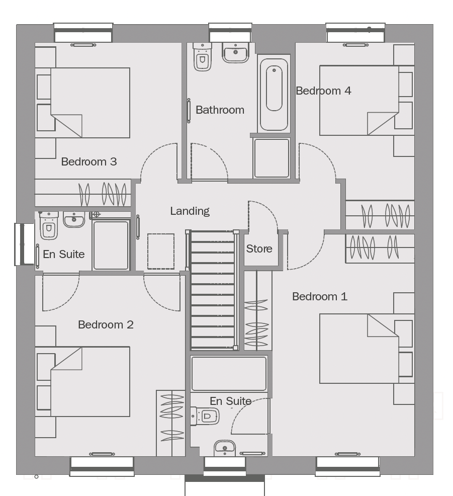 The first floor comprises four double bedrooms, two of which include en-suite facilities, and a family bathroom.